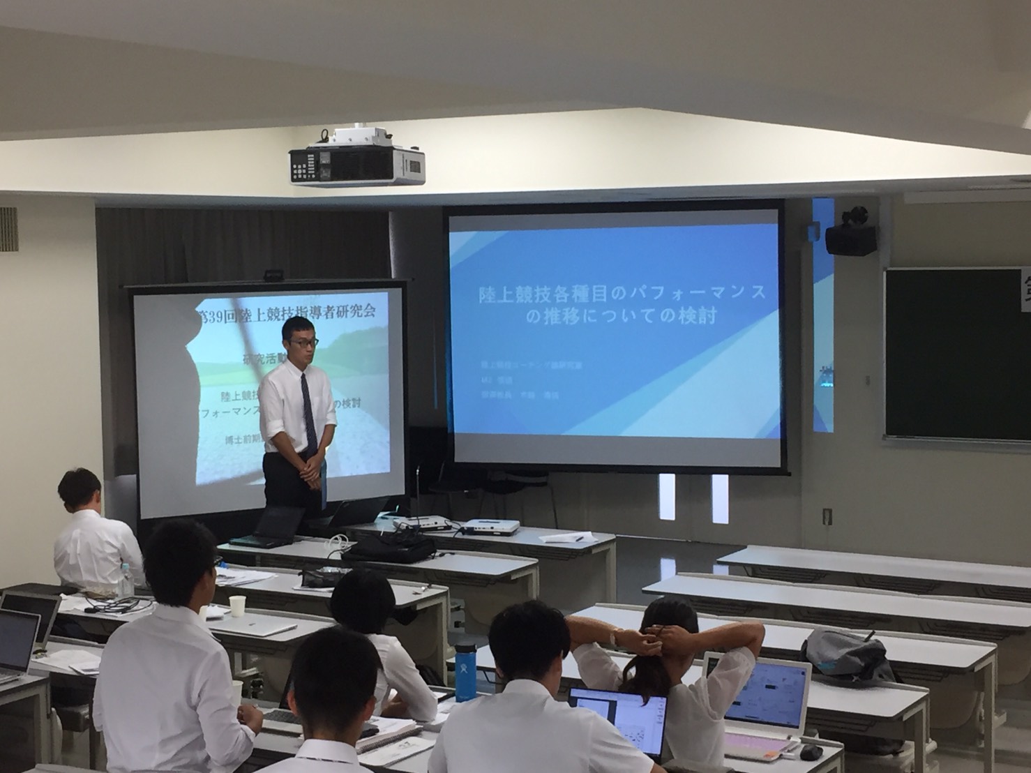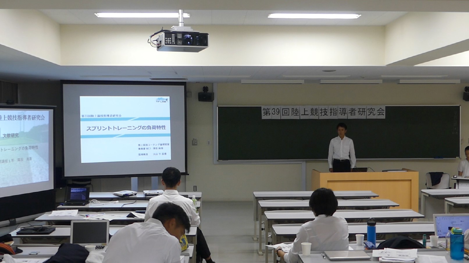 9月18日に筑波大学にて第39回陸上競技指導者研究会を開催しました。本年度は森先生の基調講演および博士前期課程の学生が発表を行いました。